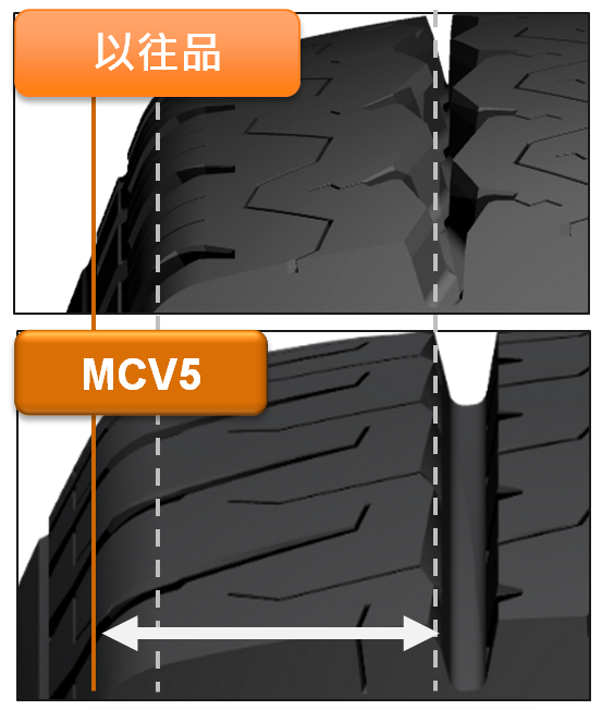 在提升安全性能上,瑪吉斯MCV5采用大寬胎肩花紋設(shè)計,胎肩寬度提升2%,接地面積提升4%,載重行駛時過彎與剎車能提供更好的抓地力。同時從卡車胎設(shè)計汲取經(jīng)驗,不規(guī)則溝底設(shè)計和連續(xù)波浪設(shè)計,有效提高排石能力,保障行駛安全。.png)