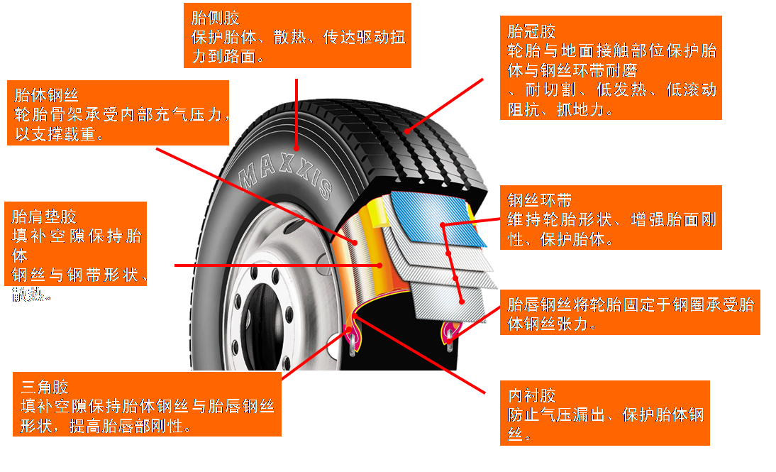 二、MAXXIS免內(nèi)胎型卡客車(chē)用子午線輪胎各部位名稱(chēng)圖